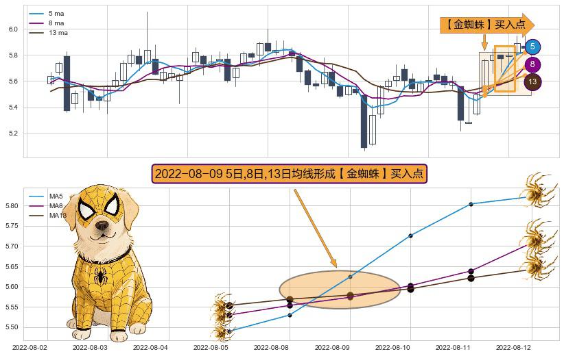 ⚀ 2022-08-09日显现 5日-8日-13日均线 【金蜘蛛】买入点 看多信号,后市看涨,买入
