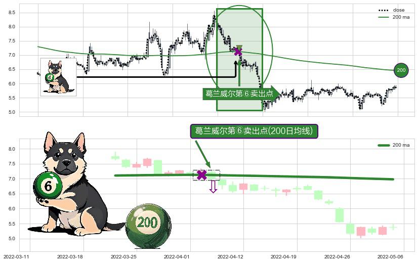 ⚀ 2022-04-07-日显现 葛兰威尔均线 200日均线 第⑥卖出点 走势反转见顶信号,后市看跌,卖出信号