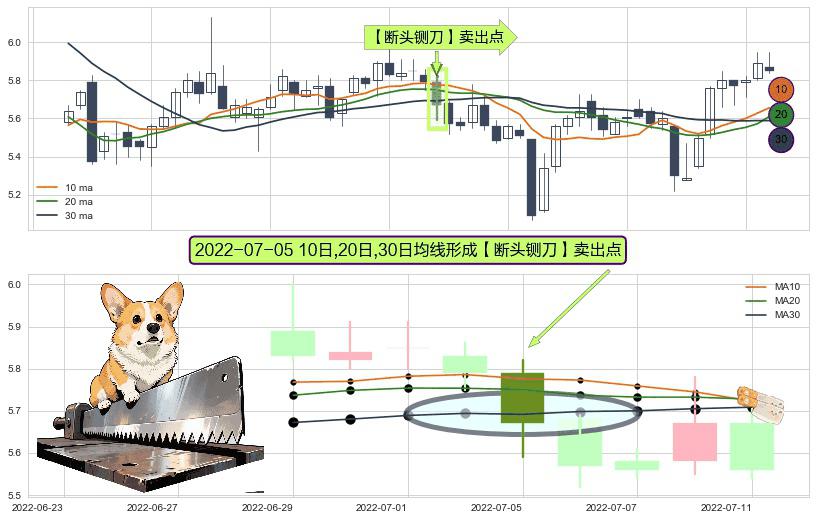 ⚀ 2022-07-05日显现 10日-20日-30日均线 【断头铡刀】卖出点 看空信号,后市看跌,卖出