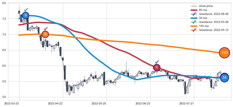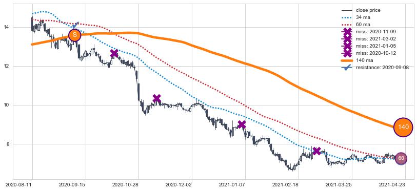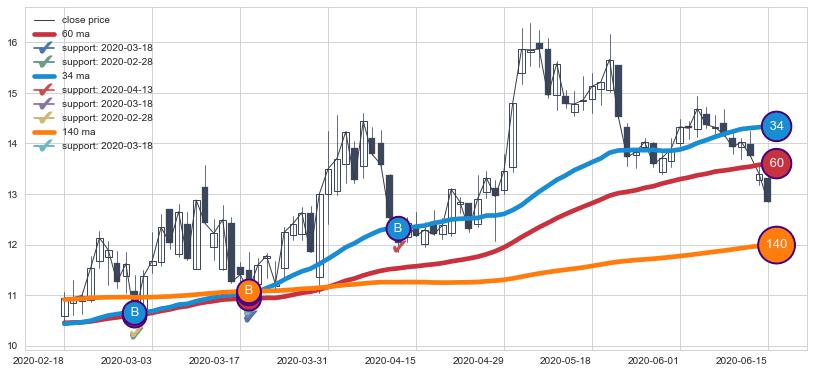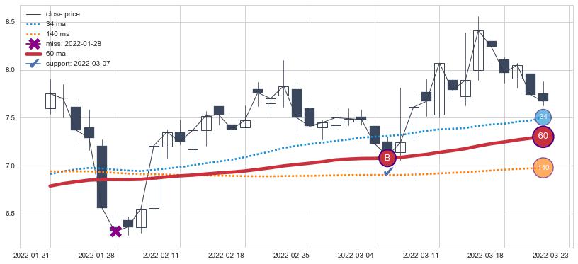 ⚃ 在破位点附近ma走势明显平稳迹象,稍后的走势中ma下垂迹象也出现,信号【可信度中等偏上】