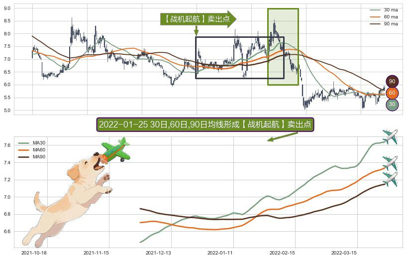 ⚀ 2021-11-29日-2022-03-28日显现 30日-60日-90日均线 【战机起航】卖出点 看空信号,后市看跌,卖出