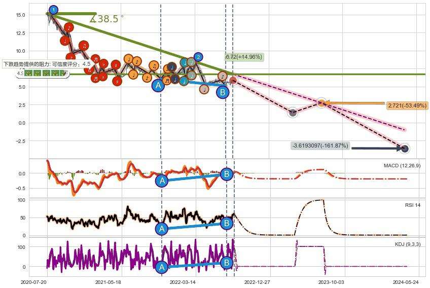 ➢ 预测:2024-05-24,【继续下探】稳定目前下跌趋势的前提下,预测价格:-3.6193097