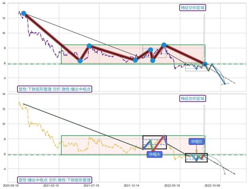 | 7 🅚:塔形顶 | 圆顶 ➕ ☯️:缠论中枢点下降缠中枢B破位后距离1买距离较远,随后猜想后续持续下跌(趋势跟踪) ☞ 看空信号 ⇥ 【🅚线】交织【图形】⇥ 综合量化分数: 44 | > |