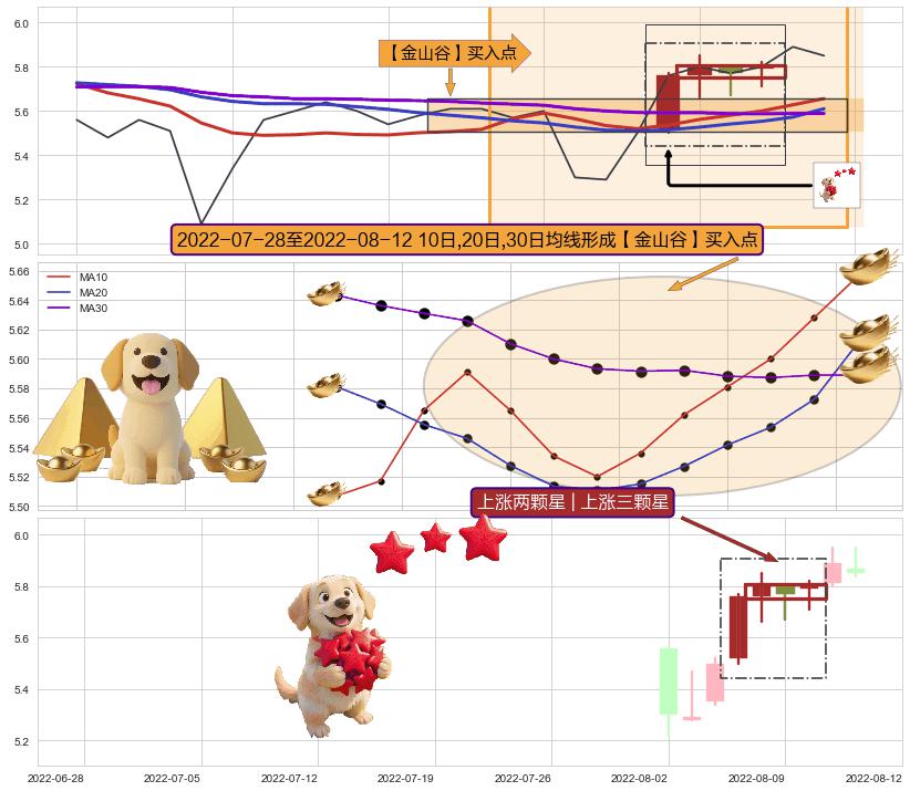 | 4 🅚:单针探底(定海神针) ➕ 🎢:【金银山谷】买入点均线组合买入点信号形成后,猜想后续突破上升,沿着向上的尖头三角上涨 ☞ 看多信号 ⇥ 【均线】交织【🅚线】⇥ 综合量化分数: 63 | > |