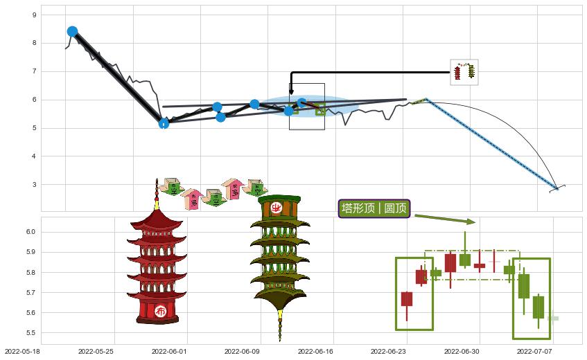 ➢ 【卖1】: 激进型 卖点→(2022-07-05: 5.70 )形成突破升🚩楔型【整理】形态