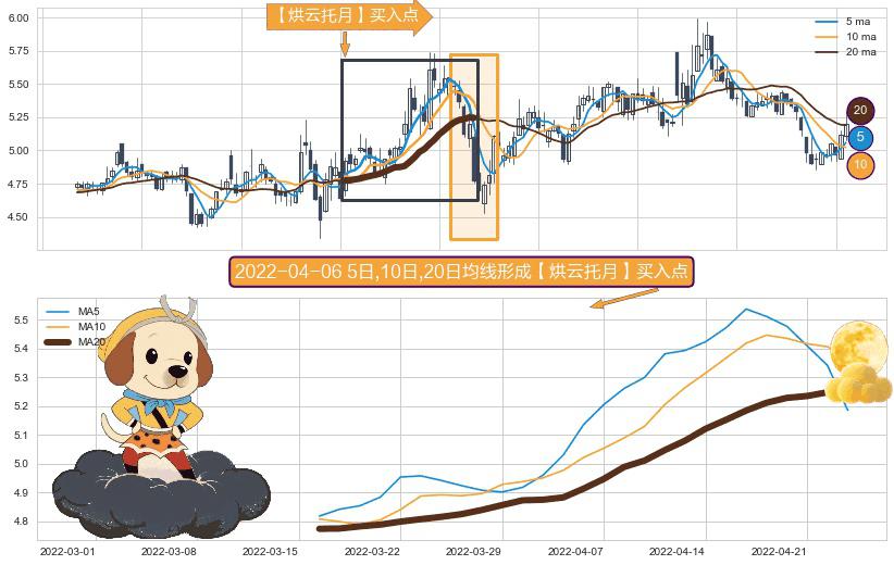 ⚀ 2022-03-16日-2022-04-25日显现 5日-10日-20日均线 【烘云托月】买入点 看多信号,后市看涨,买入