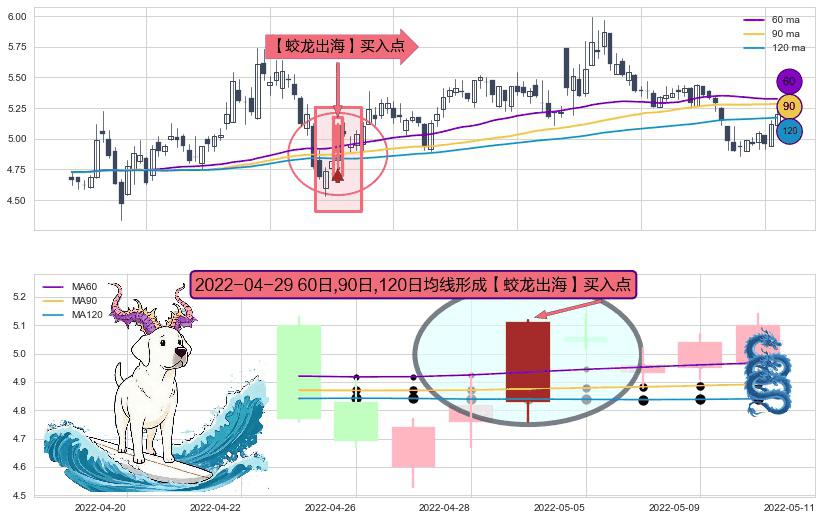 ⚀ 2022-04-29日显现 60日-90日-120日均线 【蛟龙出海】买入点 看多信号,后市看涨,买入