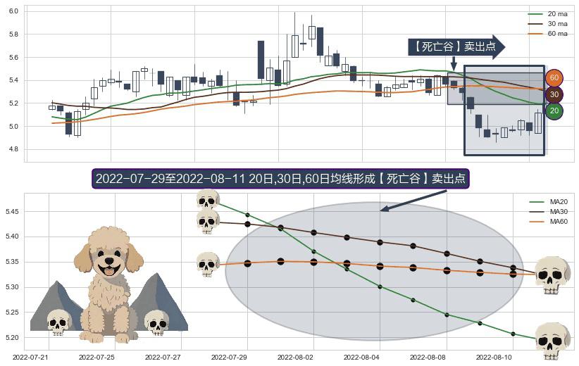 ⚀ 2022-08-01-日至2022-08-11-日显现 20日-30日-60日均线 【死亡谷】卖出点 看空信号,后市看跌,卖出