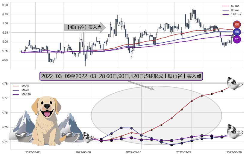⚀ 2022-03-10-日至2022-03-28-日显现 60日-90日-120日均线 【银山谷】买入点 看多信号,后市看涨,买入