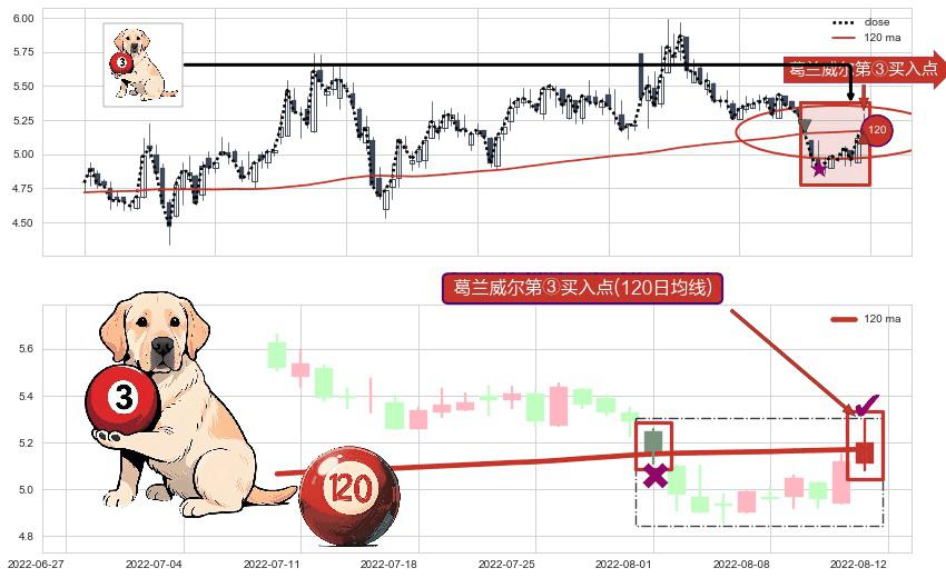 ⚀ 2022-08-12-日显现 葛兰威尔均线 120日均线 第③买入点 上升趋势的中继信号,后市看涨,买进信号