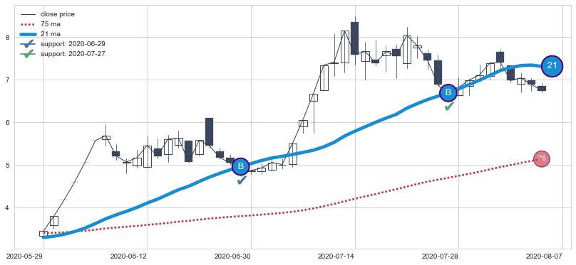 ⚂ 2022-08-01-日均线向下破位,2022-08-12-日重新上穿突破均线,均线支撑再次生效