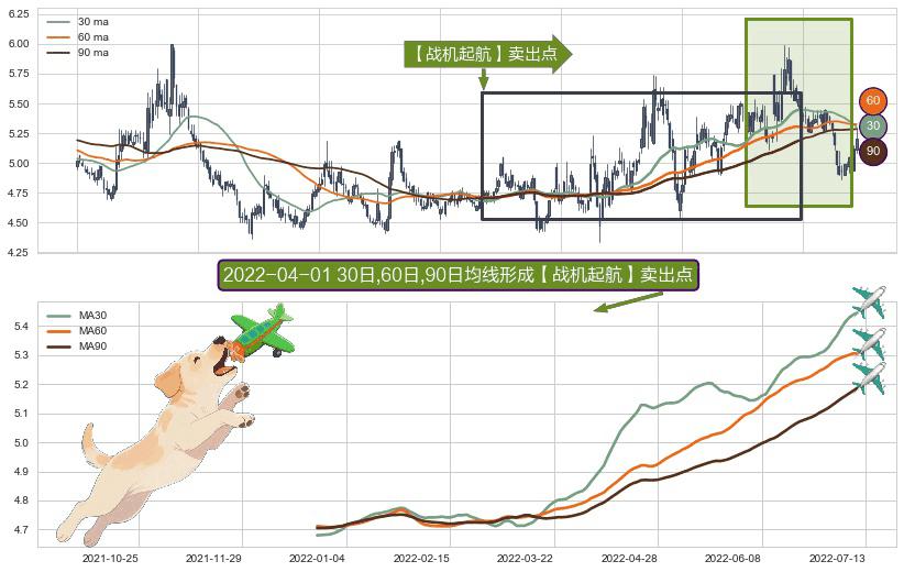 ⚀ 2021-12-23日-2022-07-11日显现 30日-60日-90日均线 【战机起航】卖出点 看空信号,后市看跌,卖出
