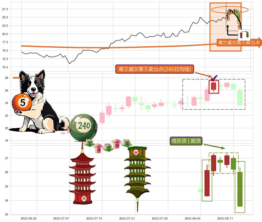 | 3 🅚:塔形顶 | 圆顶 ➕ 🎢:【战机起航】卖出点均线组合卖出点信号形成后,猜想后续上行结束,持续回落下跌(均值回复) ☞ 看空信号 ⇥ 【均线】交织【🅚线】⇥ 综合量化分数: 49 | > |