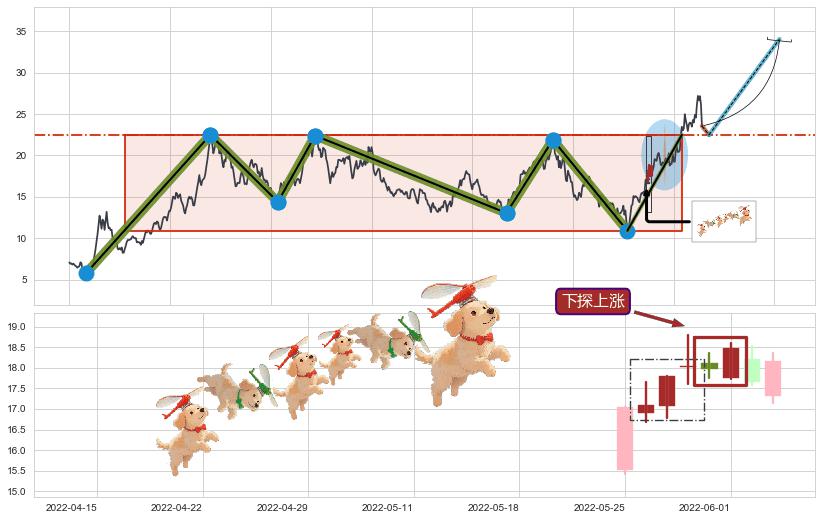 | 5 🅚:多方尖兵 ➕ 📐:上涨矩形整理向上突破击穿阻力位, 猜想持续拉升上涨,被突破的阻力位已变为支撑位 ☞ 看多信号 ⇥ 【🅚线】交织【图形】⇥ 综合量化分数: 55 | > |