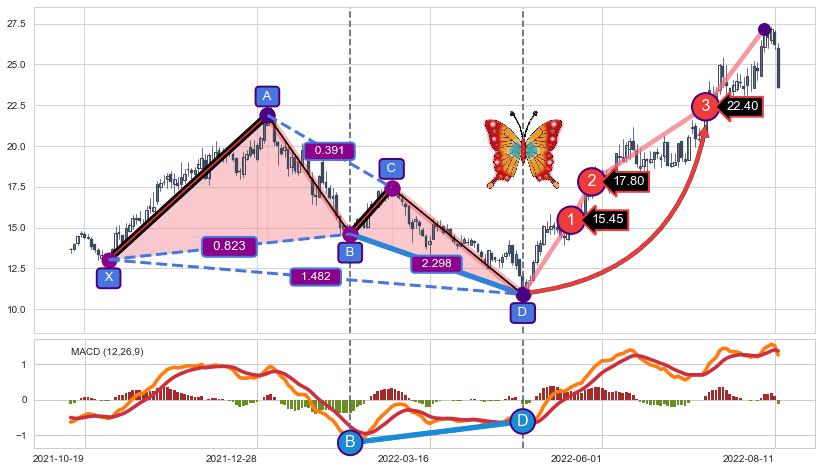 ➣ 已完成【蝴蝶】形态起点X: 2021-10-28, 终点D: 2022-04-26, 共121交易日