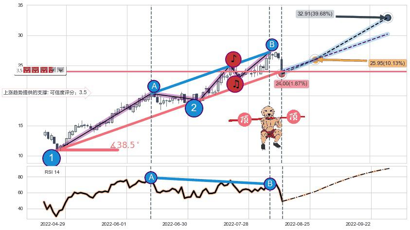 ➢ 2022-07-14到达第❸价格目标位置22.40