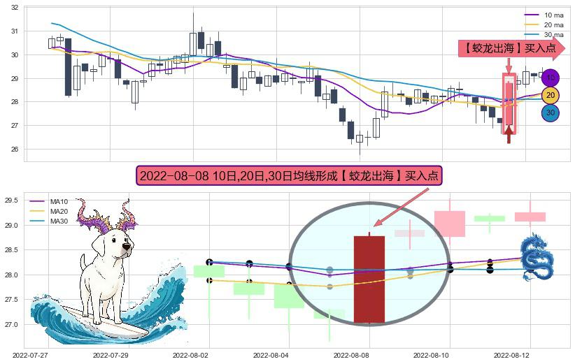 ⚀ 2022-08-08日显现 10日-20日-30日均线 【蛟龙出海】买入点 看多信号,后市看涨,买入