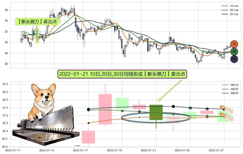 ⚀ 2022-01-21日显现 10日-20日-30日均线 【断头铡刀】卖出点 看空信号,后市看跌,卖出