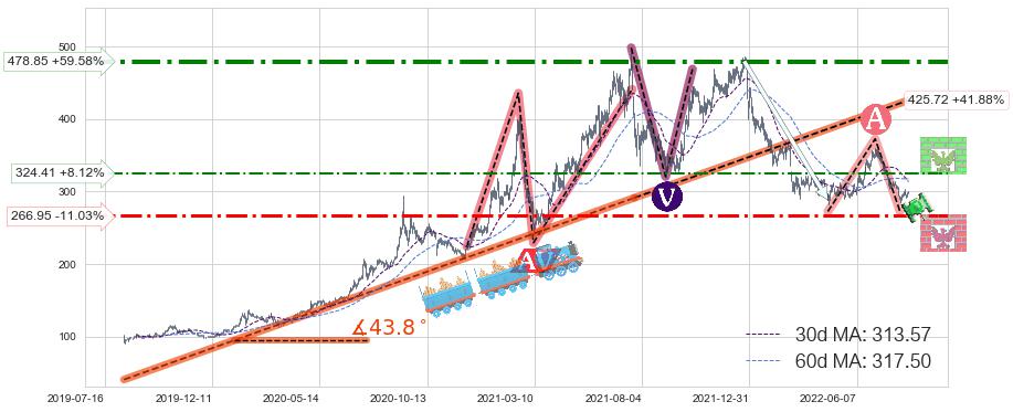 ♘ 阻力价格位324.41,可信任强度41.05%,距离最后交易2022-08-12形成的收盘价格300.06相差 +8.12%