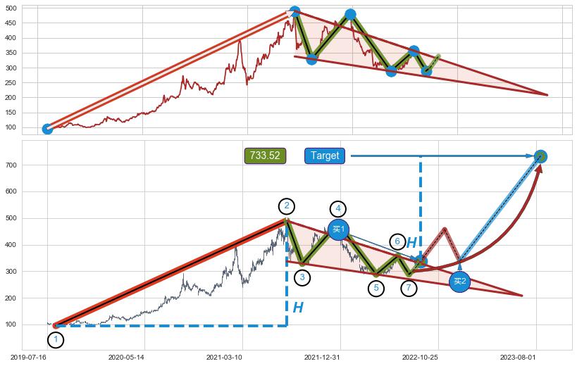 ➣ 【仅预测突破】最后价格:300.06与预测突破价格:338.56→【空间中等】后续最小【整理】第一目标价格→(2023-08-14: 733.52 )