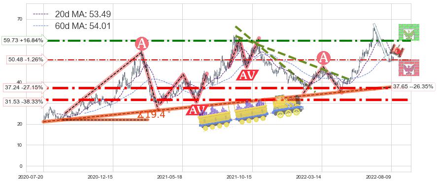 ♘ 阻力价格位59.73,可信任强度70.41%,距离最后交易2022-08-12形成的收盘价格51.12相差 +16.84%