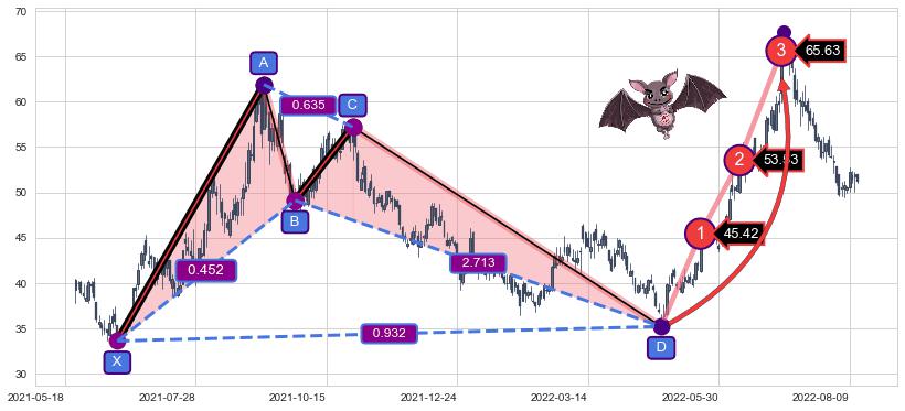 ➣ 已达成看涨【蝙蝠】形态全部的预期目标
