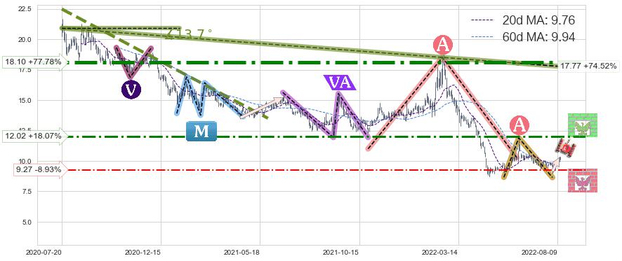 ♘ 支撑价格位9.27,可信任强度54.32%,距离最后交易2022-08-12形成的收盘价格10.18相差 -8.93%