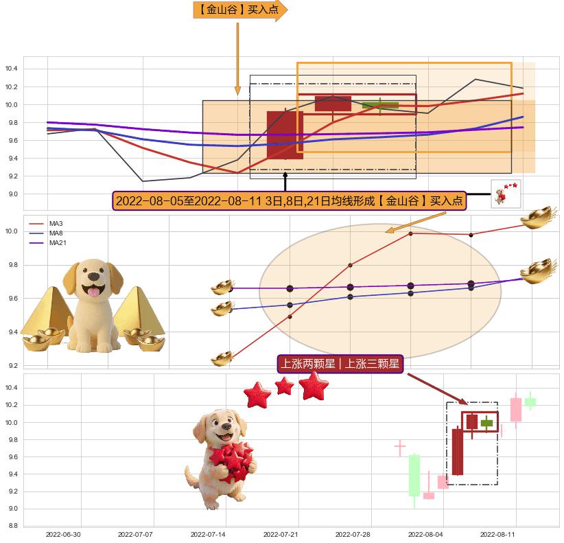➣ AI预测: 假定反转启动后, 第❶目标位置(2022-08-29, 9.97)