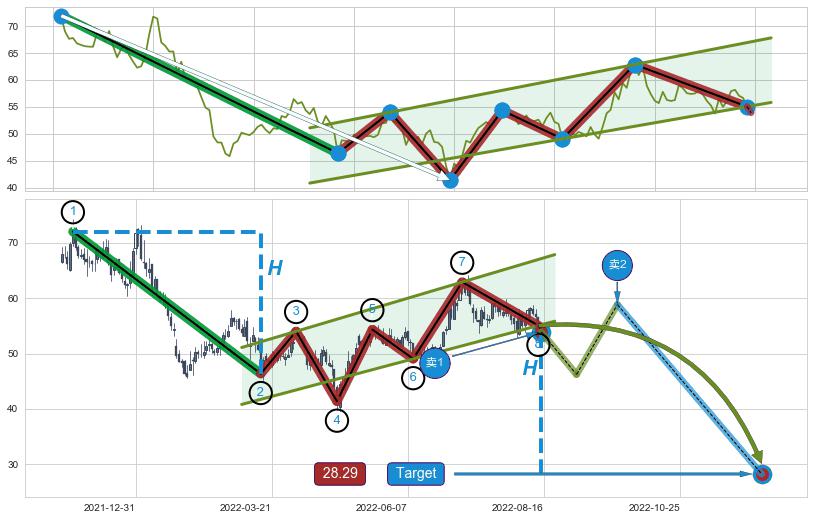 ➣ 最小中继整理跌幅→𝐇: 25.62 (𝐇旗杆的长度:旗杆起点→顶点)