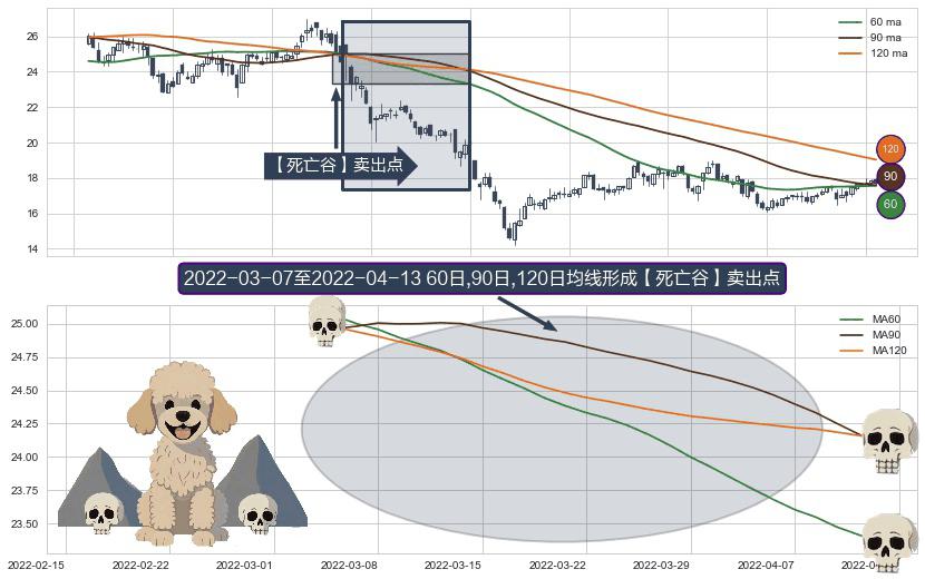 ⚀ 2022-03-08-日至2022-04-13-日显现 60日-90日-120日均线 【死亡谷】卖出点 看空信号,后市看跌,卖出