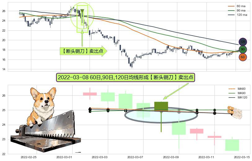 ⚀ 2022-03-08日显现 60日-90日-120日均线 【断头铡刀】卖出点 看空信号,后市看跌,卖出