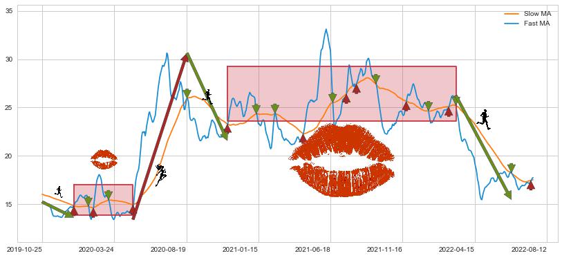 2022-03-08至2022-07-01 慢线与快线呈空头排列, 慢线与快线接触少,无缠绕