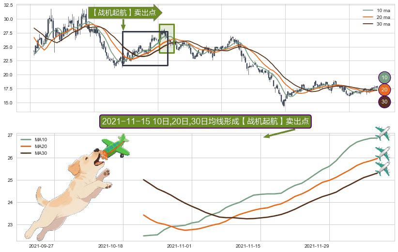 ⚀ 2021-10-21日-2021-12-08日显现 10日-20日-30日均线 【战机起航】卖出点 看空信号,后市看跌,卖出