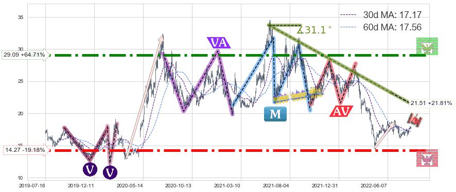 ➣ 【仅预测突破】最后价格:17.66与预测突破价格:19.53→【空间临近】后续最小【整理】第一目标价格→(2023-01-20: 40.26 )
