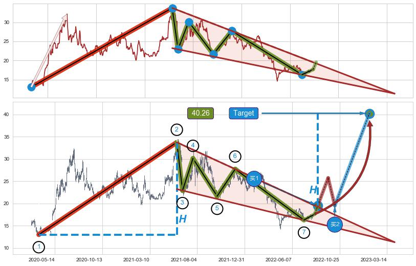 ➣ 2021-06-21到达第❷价格目标位置23.09
