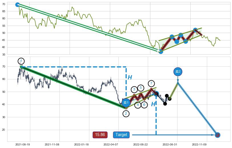 ➣ 最小中继整理跌幅→𝐇: 32.68 (𝐇旗杆的长度:旗杆起点→顶点)