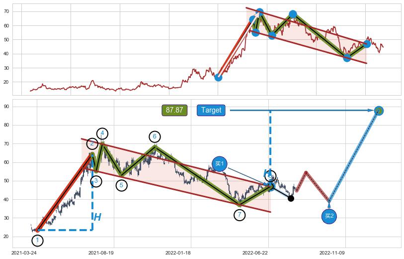 ➣ 最小中继整理涨幅→𝐇: 40.97 (𝐇旗杆的长度:旗杆起点→顶点)