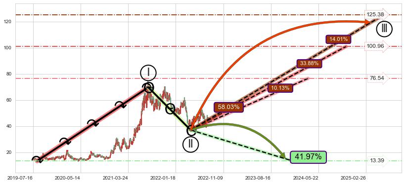 ♘ 支撑价格位13.39,可信任强度99.00%,距离最后交易2022-08-12形成的收盘价格44.53相差 -69.93%