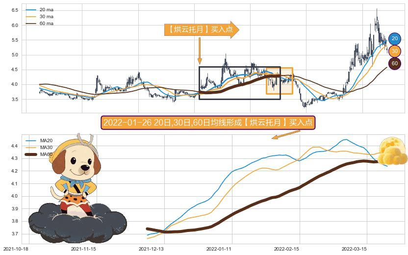 ⚀ 2021-12-06日-2022-03-23日显现 20日-30日-60日均线 【烘云托月】买入点 看多信号,后市看涨,买入
