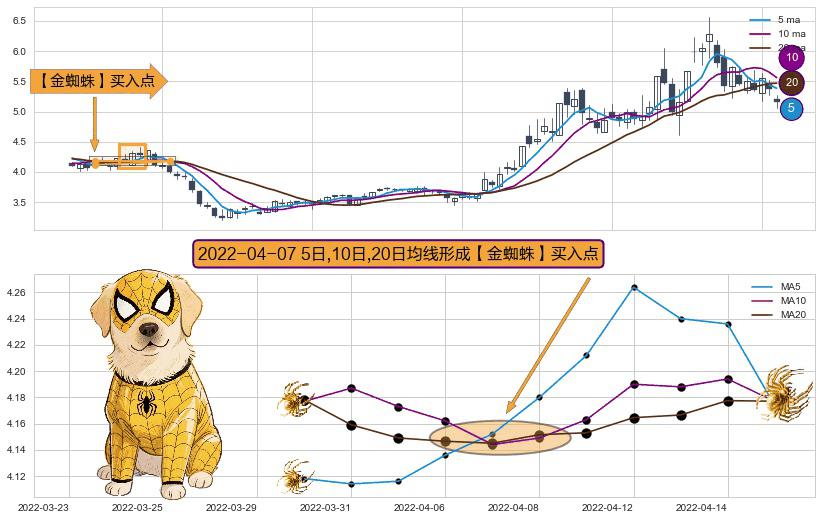 ⚀ 2022-04-07日显现 5日-10日-20日均线 【金蜘蛛】买入点 看多信号,后市看涨,买入