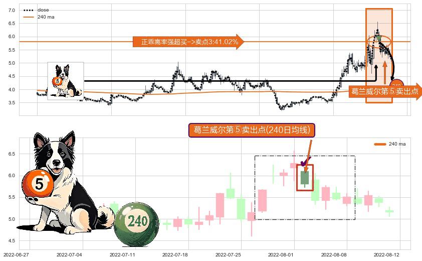 ⚀ 2022-08-02-日显现 葛兰威尔均线 240日均线 第⑤卖出点 上升趋势均值回复的短线回落信号,后市看跌,卖出信号