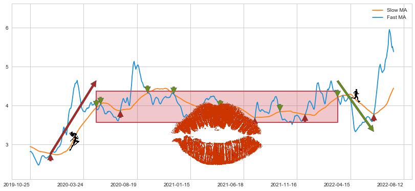 2022-03-10至2022-06-22 慢线与快线呈空头排列, 慢线与快线接触少,无缠绕