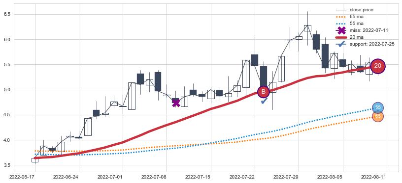 ⚂ 2022-03-15-日均线向下破位,2022-06-23-日重新上穿突破均线,均线支撑再次生效