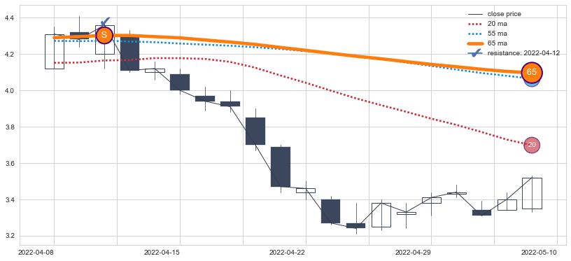 ⚁ MA20和MA30走势平行,且始终保持在短距离内,MA60始终在短中期均线下方,与短中期均线保持一定的距离,微微上行