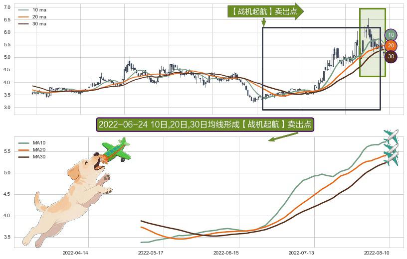 ⚀ 2022-05-09日-2022-08-09日显现 10日-20日-30日均线 【战机起航】卖出点 看空信号,后市看跌,卖出