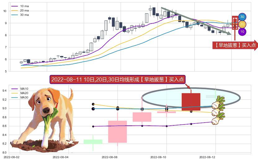 形态多维评估: ⚀ 2022-08-11日显现 10日-20日-30日均线 【旱地拔葱】买入点 看多信号,后市看涨,买入