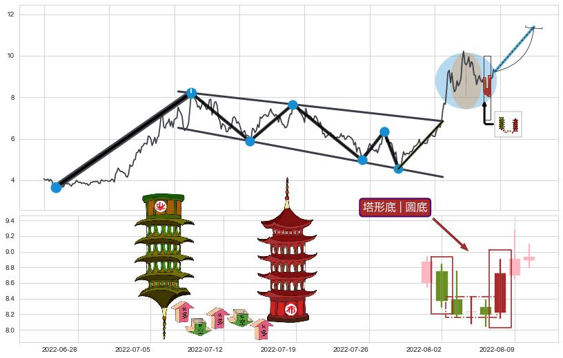 | 9 🅚:降势受阻 ➕ 📐:降旗形向上突破击穿阻力位, 猜想持续拉升上涨,被突破的阻力位已变为支撑位 ☞ 看多信号 ⇥ 【🅚线】交织【图形】⇥ 综合量化分数: 55 | > |