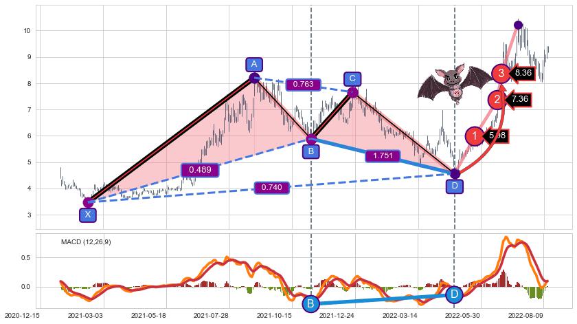 ➣ 已完成【蝙蝠】形态起点X: 2021-02-08, 终点D: 2022-04-26, 共292交易日