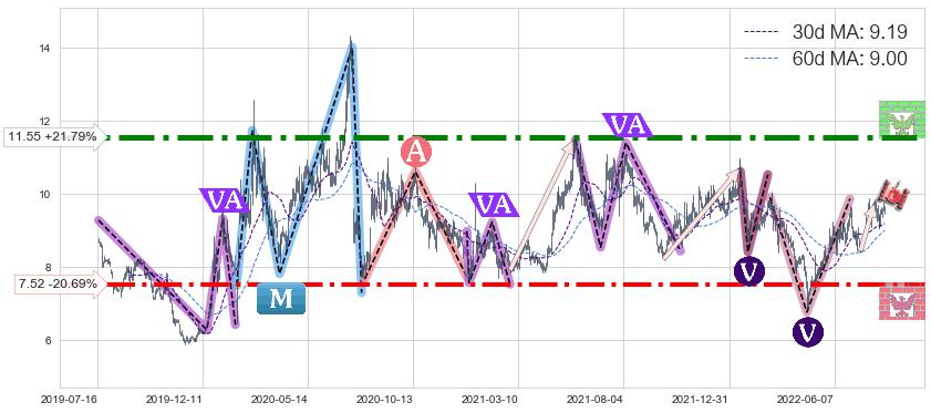 ♘ 支撑价格位7.52,可信任强度75.76%,距离最后交易2022-08-12形成的收盘价格9.48相差 -20.69%