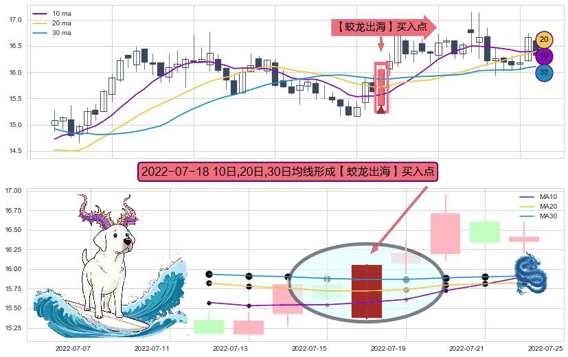 ⚀ 2022-07-18日显现 10日-20日-30日均线 【蛟龙出海】买入点 看多信号,后市看涨,买入